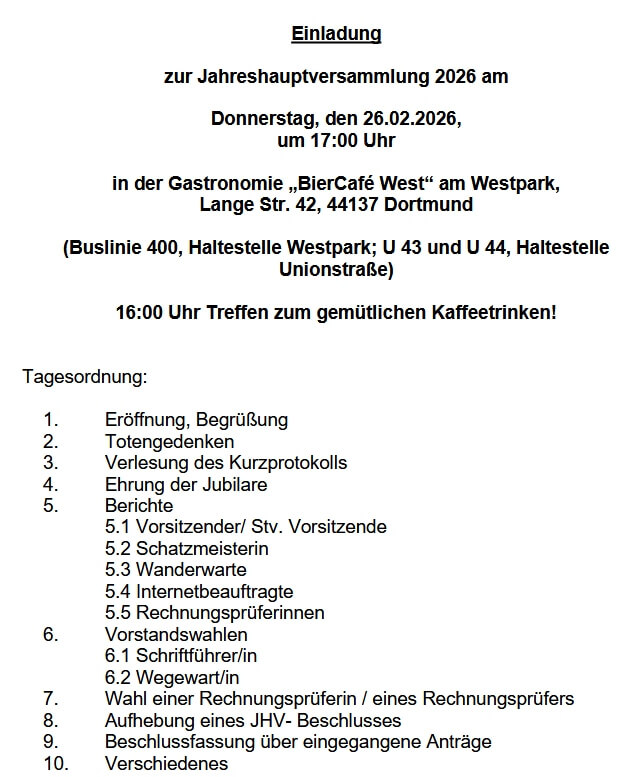 Jahres-Hauptversammlung 2026:
